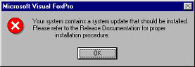 At the Microsoft Visual FoxPro screen, click OK that your system contains an update, and continue processing as usual. The screen may display a second time. If it does, click OK again.